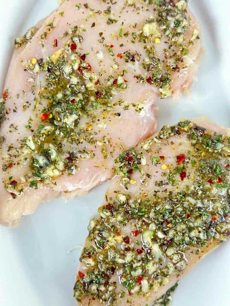 - Marinade for the chicken– Fresh lemon Juice, Italian seasoning blend, garlic powder, salt, pepper, and olive oil