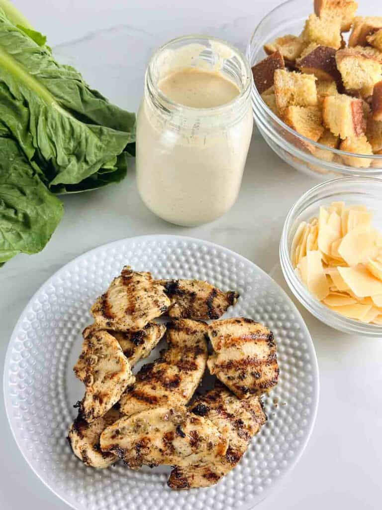 To make this grilled chicken Caesar salad recipe, you’ll need: