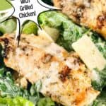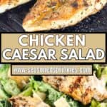 This grilled chicken Caesar salad recipe is loaded with crisp romaine, crunchy homemade croutons, creamy Caesar dressing, and Italian grilled chicken. It’s the best chicken Caesar salad you’ll ever eat and easy to make right at home! And you can make it totally from scratch or shortcut it for an easy midweek dinner.
