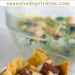 Our homemade croutons recipe compliments any salad perfectly. Perfectly cripsy and so much yummier than storebought croutons, this is an easy way to turn a regular old salad into something special!