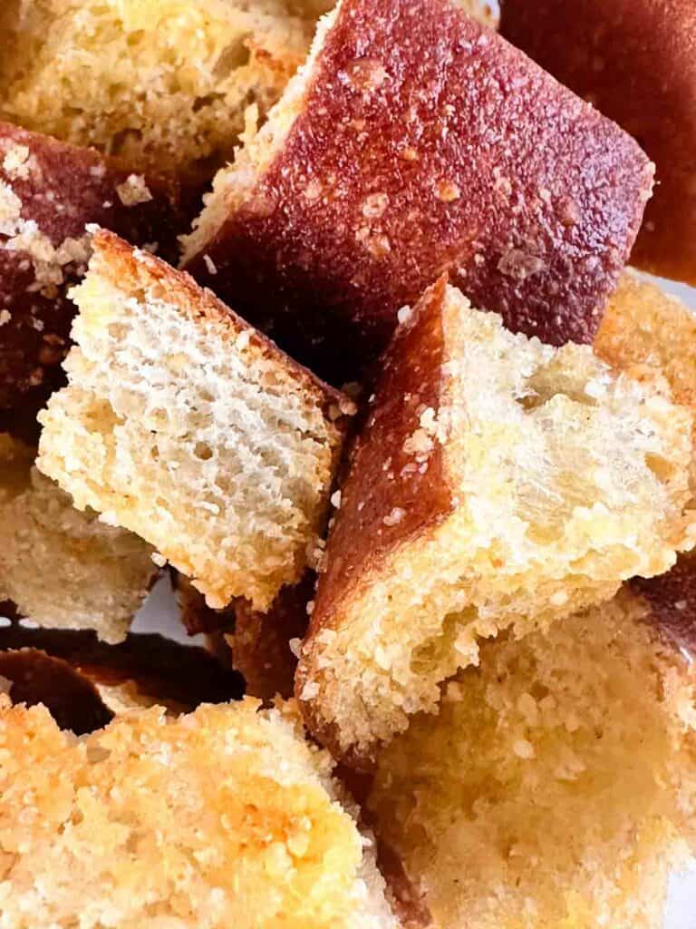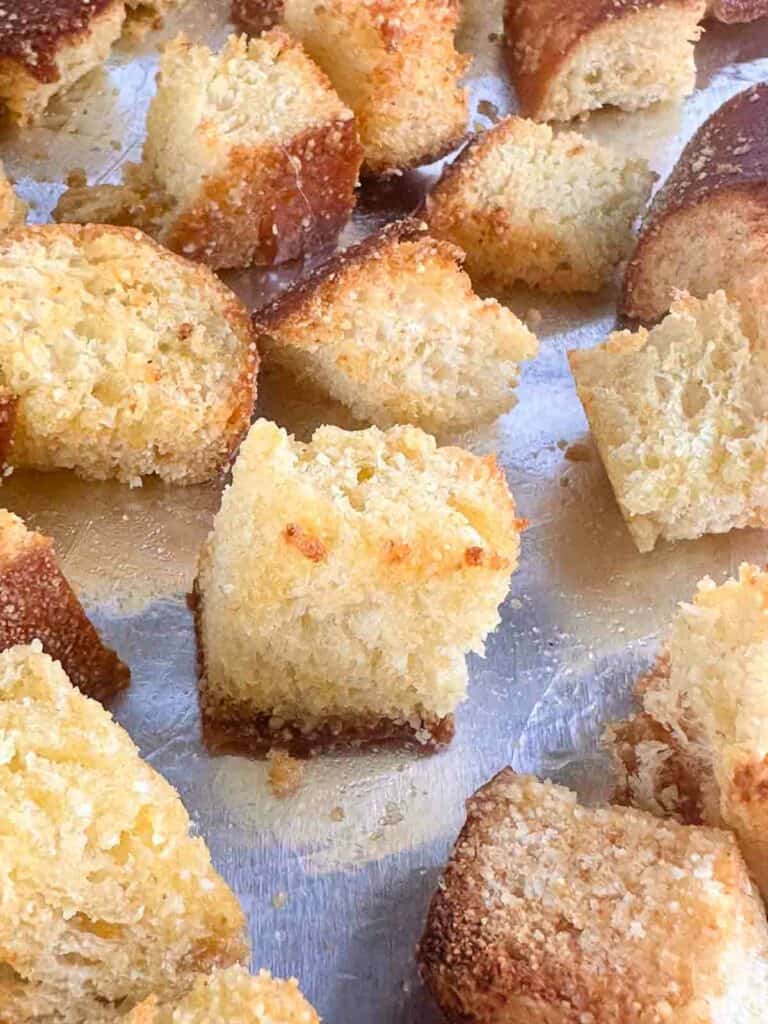 - Grated Parmesan Cheese – This is optional. This gives the croutons a bit of added crispiness and flavor.