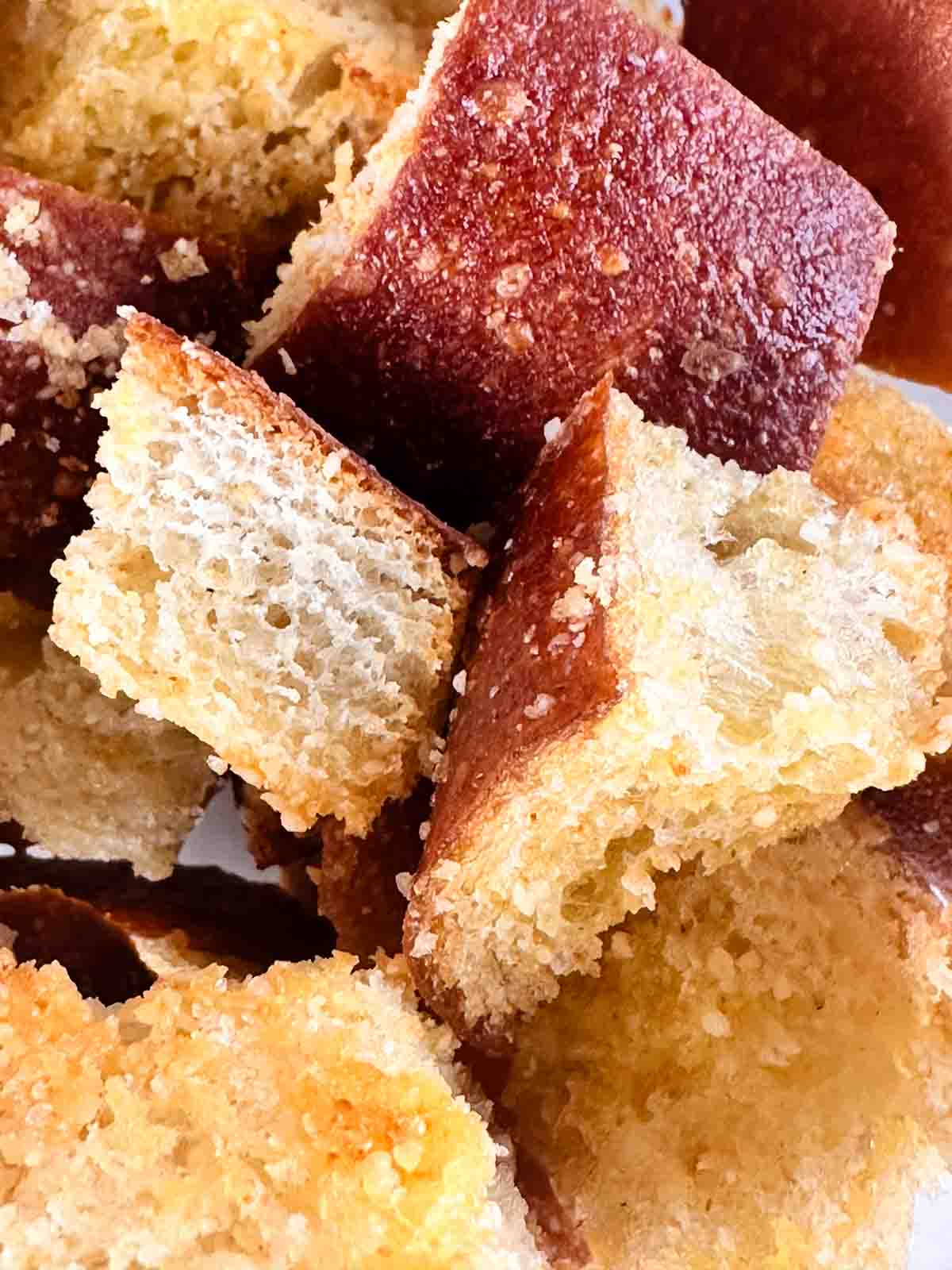- For added richness, you can pour some melted butter over the croutons right before adding to the oven. This can give them some extra crisp as well as a richer flavor.