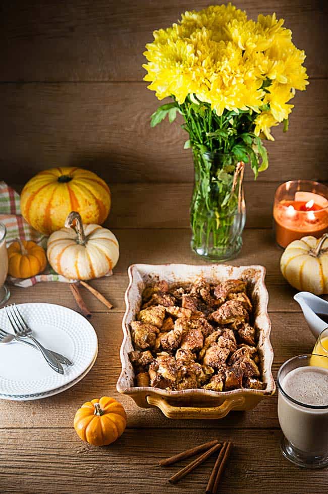 Pumpkin French toast casserole is a filling breakfast that you can pretty much make the night before.