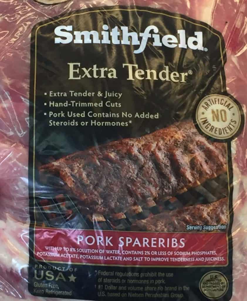 - 1 rack of Smithfield extra tender back ribs