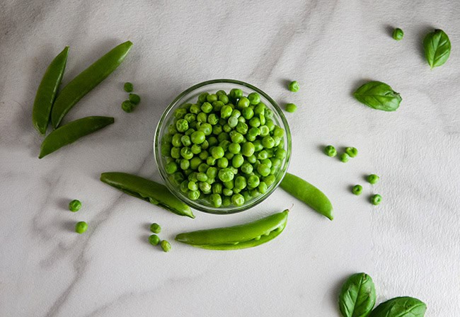 - While the pasta is boiling, heat a large pan over medium low to medium heat with half of the olive oil. Peel the garlic cloves and gently crush them by pressing down on them by with a knife on its side to release their fragrance. Add the peas, white wine, lemon zest, spices, and garlic to the pan. Cook until the peas turn bright green and soften slightly about 3 minutes-4 minutes. Add the contents of the pan to a food processor along with the basil, lemon juice, walnuts and cheese. Pulse to blend it together and add the remaining oil a little at a time until the pesto reaches desired consistency.