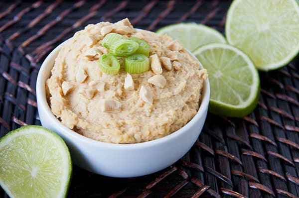 I love Thai food. Adore it. Could eat it every day. And I’m pretty sure when I was pregnant with Goose, I did. All I wanted was Thai food, all day, every day. I wish I had come up with this spicy Thai style peanut hummus then.